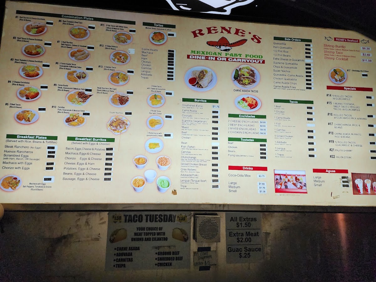 Rene's Mexican Food is a straightforward spot you’ll find tucked into downtown Wichita, serving up no-nonsense Mexican and taco fare. The atmosphere leans practical and casual rather than polished — it’s one of those places where grabbing a quick, hearty bite works best, whether you’re running errands nearby or looking for a filling lunch to-go.